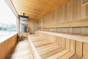 サウナで汗を流した後に、ボリュームのあるハンバーガーと冷たく爽快なルートビアで水分補給とエネルギーチャージができます。